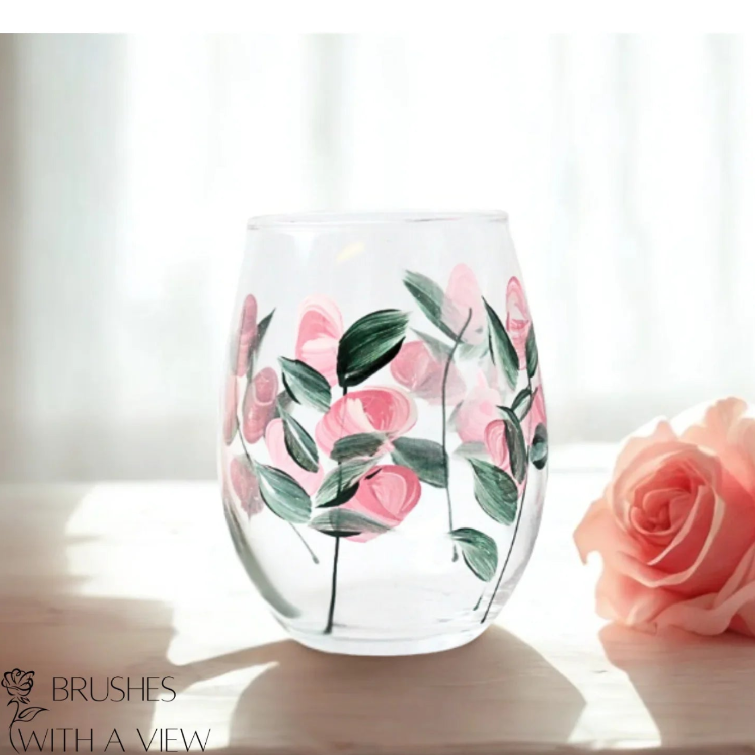 Beautiful hand-painted floral wine glasses featuring roses, sunflowers, daisies, and lavender designs.Each...